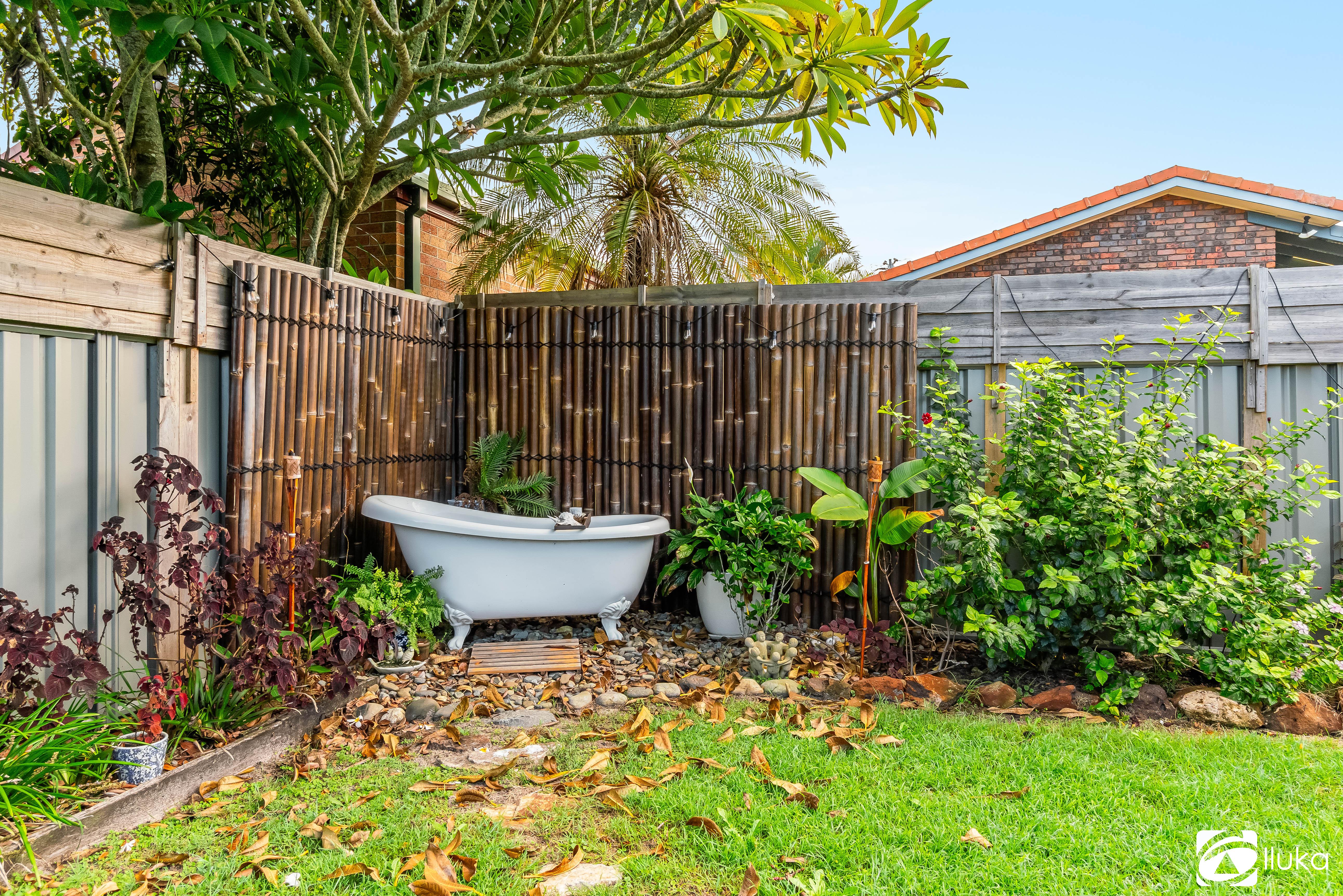 Outdoors, the property truly shines. A fully enclosed front yard provides added privacy, while the rear yard is also fully fenced and designed for relaxation, complete with a unique outdoor bath and infrared sauna - your own private retreat.